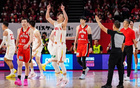 决定胜负的第四节,赵睿五犯离场,考验再次来临。廖三宁与胡金秋的挡拆顺下频频奏效,接连取分稳住局面,73比68、75比68、78比70,中国队逐渐拉开分差,胜利的天平慢慢向中国男篮倾斜。比赛还剩54秒,中国队82比74保持领先。